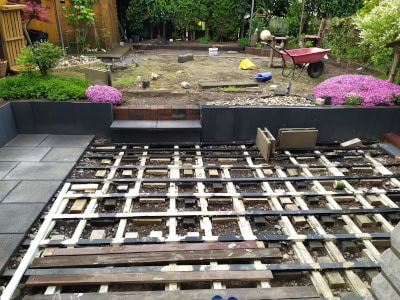 Wir haben geplant, unseren Garten und Terrasse neu zu gestalten.