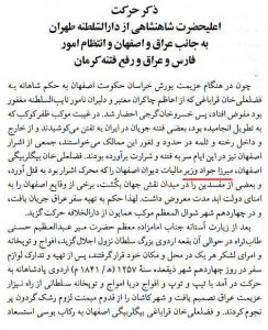 ذکر حرکت اعليحضرت شاهنشاهی (محمد شاه) از دارالسلطنه طهران به جانب اصفهان