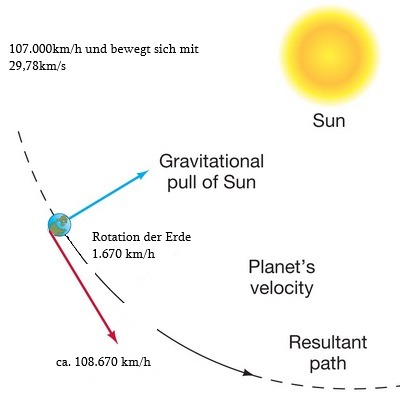 - سرعت مداری: سرعت حرکت زمین به دور خورشید (حدود ۱۰۷,۰۰۰ کیلومتر بر ساعت). (vOrbital)