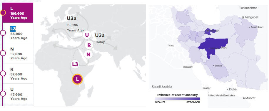 Shahsia (Family in Isfahan) mtDNA haplogroup is U3a and U3a traces back to a woman who lived approximately 15,000 years ago.