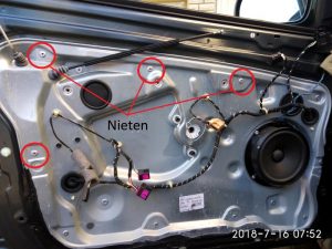 Es muss das Kabel des Türöffners auf der Rückseite, Lautsprecher, Außenspiegel, Einstiegsleuchte gelöst werden.