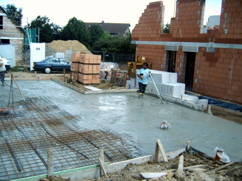 Die Bodenplatte bekommt eine glatte Oberflaeche