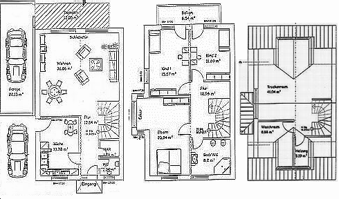 Erdgeschoss, Obergeschoss, Dachgeschoss