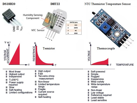 سنسور دما دیجیتال DS18B20, سنسور رطوبت و دما DHT22, دماسنج NTC