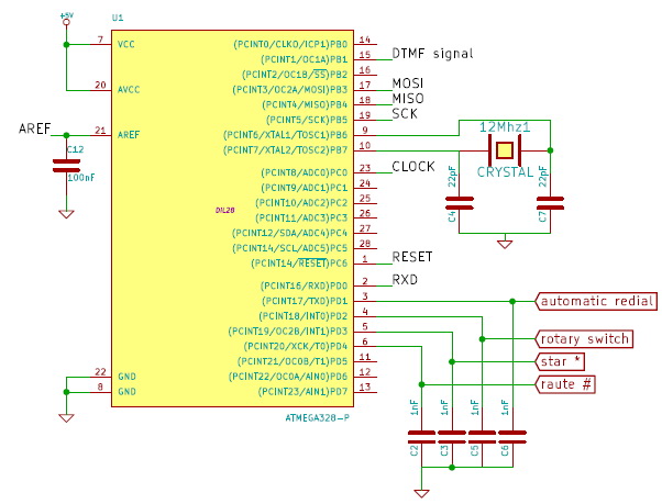 Port D (PD1 to PD5) – inputs (dial Star *, Hash #, NSI, ..)The required voltage power for the microcontroller will get from La and Lb the phone line.