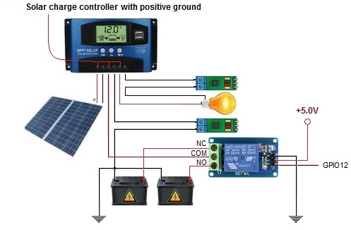 - The solar panels charger is positive ground controller. (And this provide me a lot problems with negative grounded ESP.)